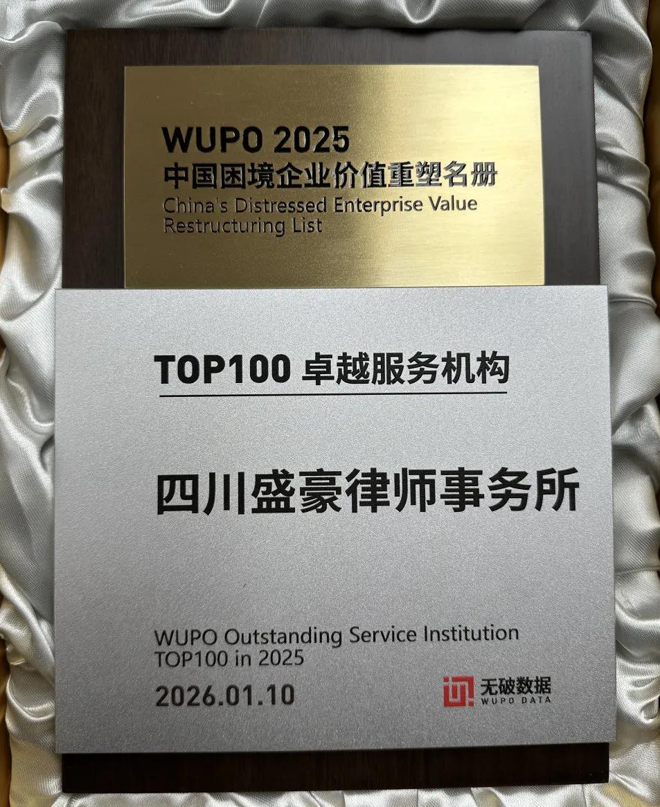 双荣誉加身,既是鼓励更是责任。未来,盛豪律所将继续以专业为基,以客户需求为导向,持续深耕困境企业服务领域,与行业同仁协同发力,为更多企业破解发展难题、实现价值重塑,助力中国商业生态稳健发展。