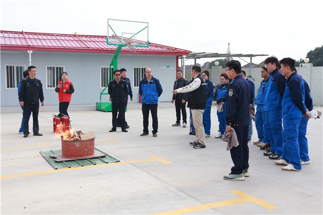 本次演练邀请属地消防支队教员为大家讲解消防应急及逃生知识,面对点燃的油盆火,大家按要领瞄准火源根部喷射,顺利灭火,展现出高效协同的应急能力。